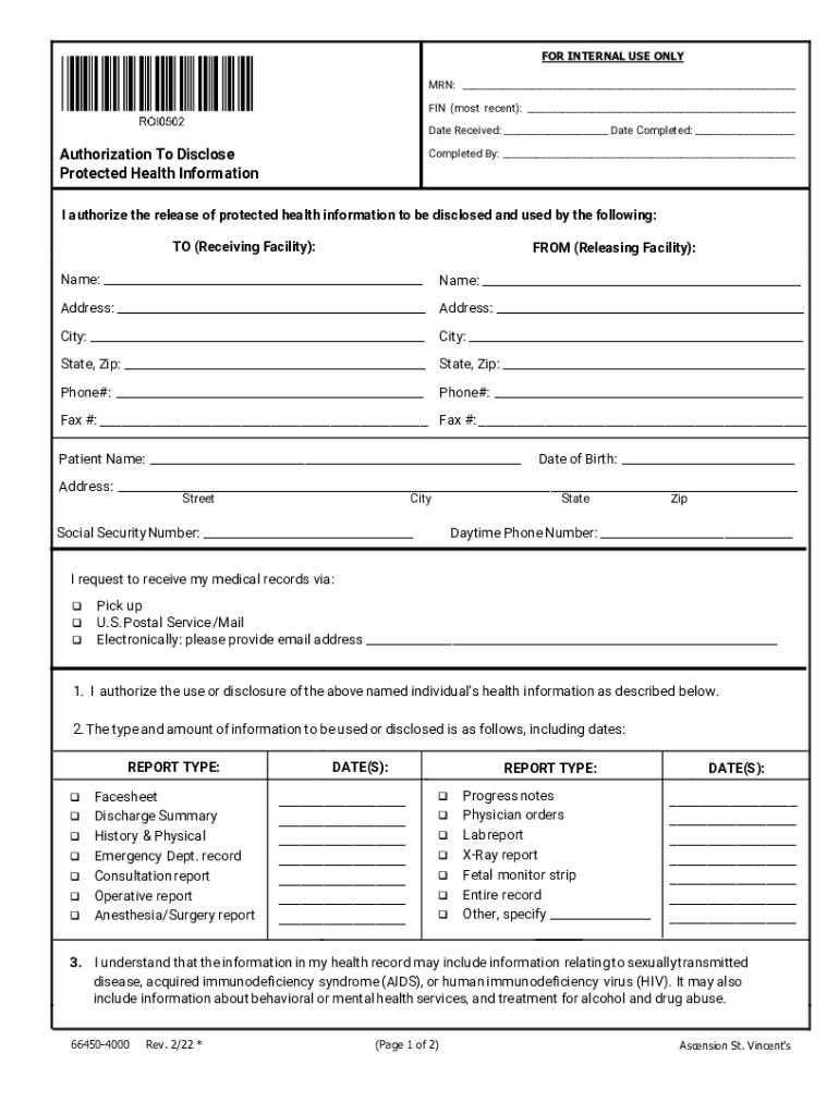 FOR INTERNAL USE ONLY MAN: ___ FIN (most recent): ___ Date Received: ___ Date Completed: ___Authorization To Disclose Protected Health InformationCompleted By: ___I authorize the release of protected
