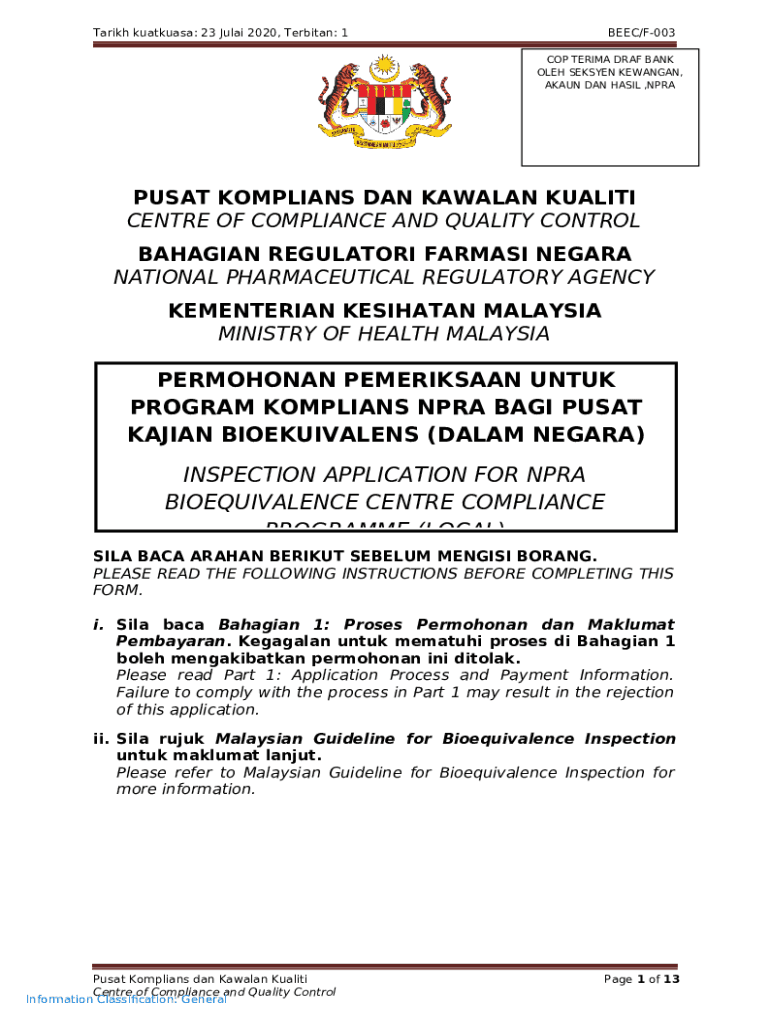 Template National Pharmaceutical Regulatory Agency - NPRA instructions