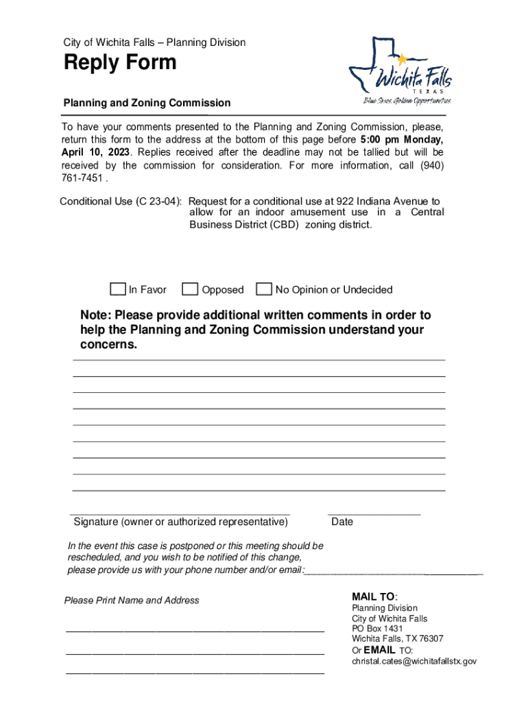 City of Wichita Falls Planning Divisionally Form Planning and Zoning Commission To have your comments presented to the Planning and Zoning Commission, please, return this form to the address at the