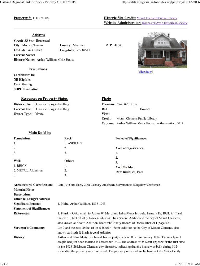 Oakland Regional Historic Sites Property # 1111278006Property #: 1111278006http://oaklandregionalhistoricsites.org/property/1111278006Historic Site Credit: Mount Clemens Public Library Website Administrator: