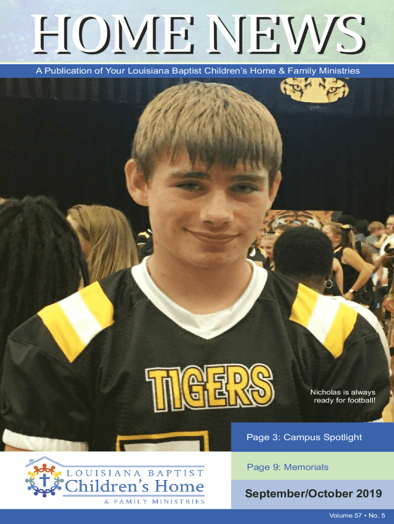 HOME NEWS A Publication of Your Louisiana Baptist Children's Home & Family Ministries Nicholas is always ready for football! Page 3: Campus Spotlight Page 9: Memorials September/October 2019Volume