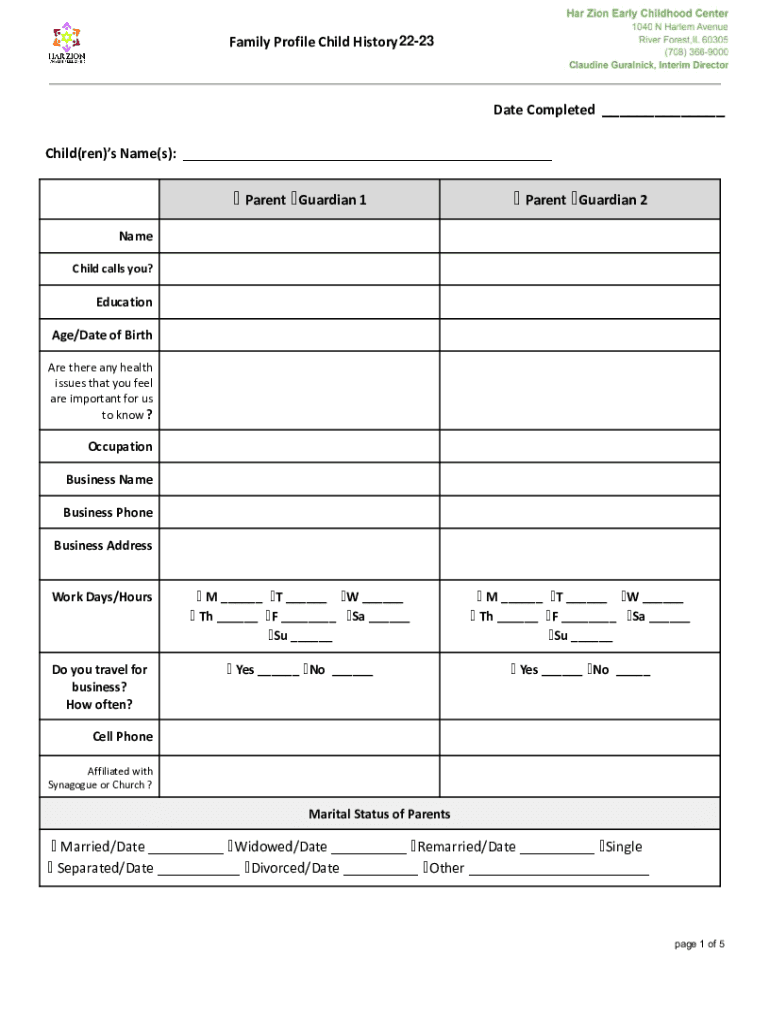 Get the free New Child #121-22 Family Profile Child History-5 pages.pdf