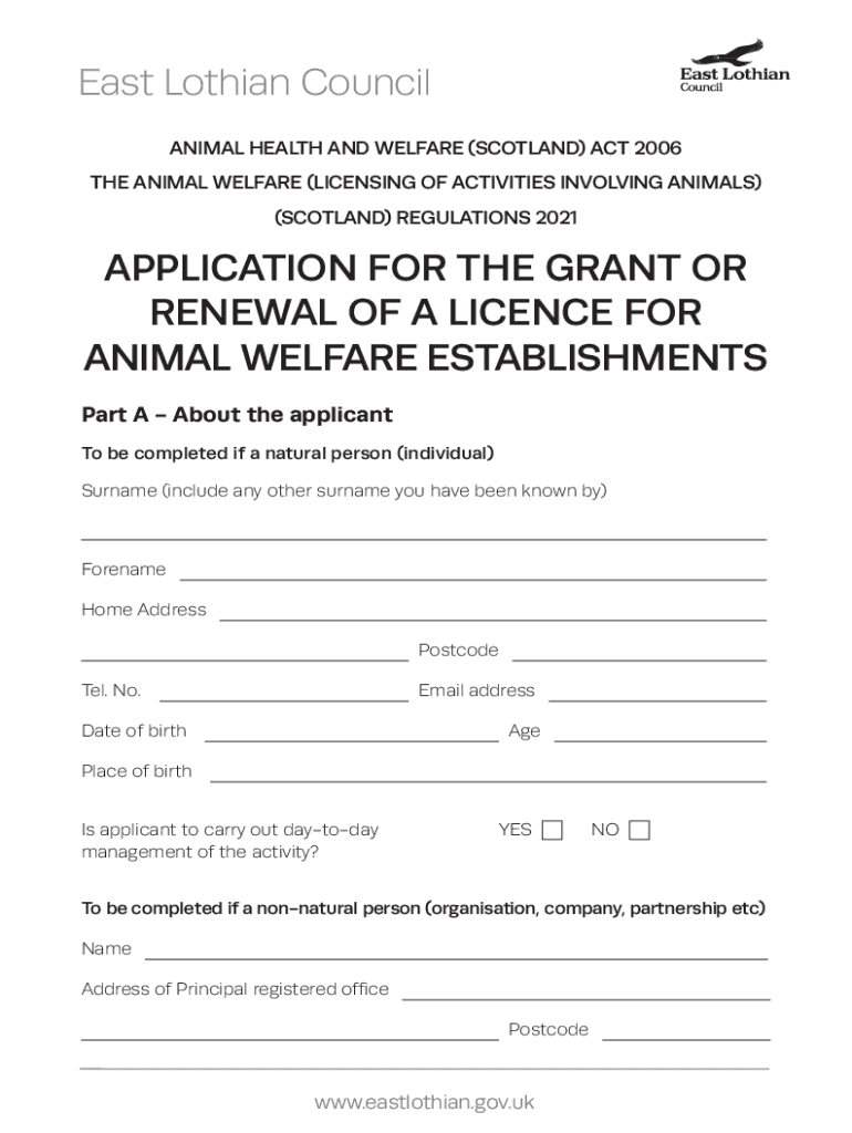 Get the free application for the grant or renewal of a licence for animal ...