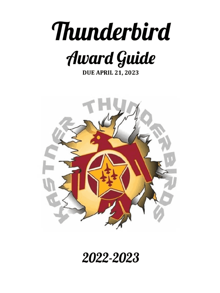 Underbid Away Guide APRIL 21, 202320222023Blank Page2 | Vegetable of Contents Thunderbird Award Check Off and Due Date. 5Philosophical Statement. 6Thunderbird Award Responsibility. 7Thunderbird Award