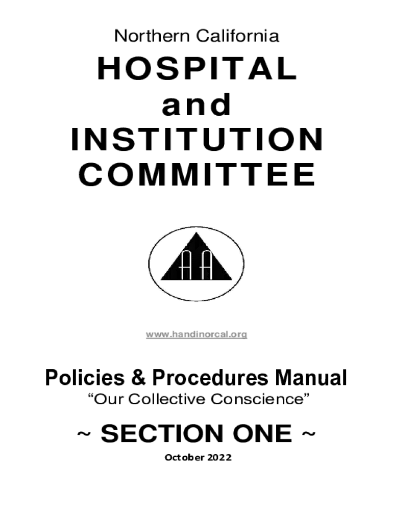 Northern CaliforniaHOSPITAL and INSTITUTION Committee.handinorcal.policies & Procedures Manual Our Collective Conscience SECTION ONE October 2022Contents STATEMENT OF PURPOSE .................................................................