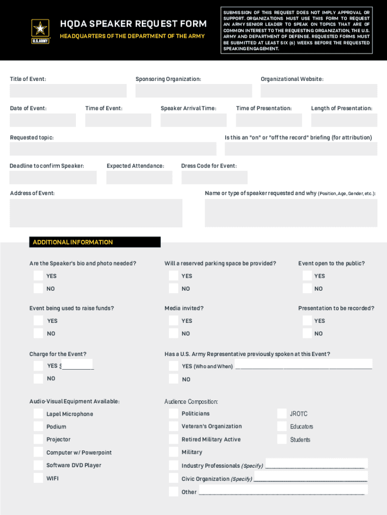 How to fill out hqda speaker request form