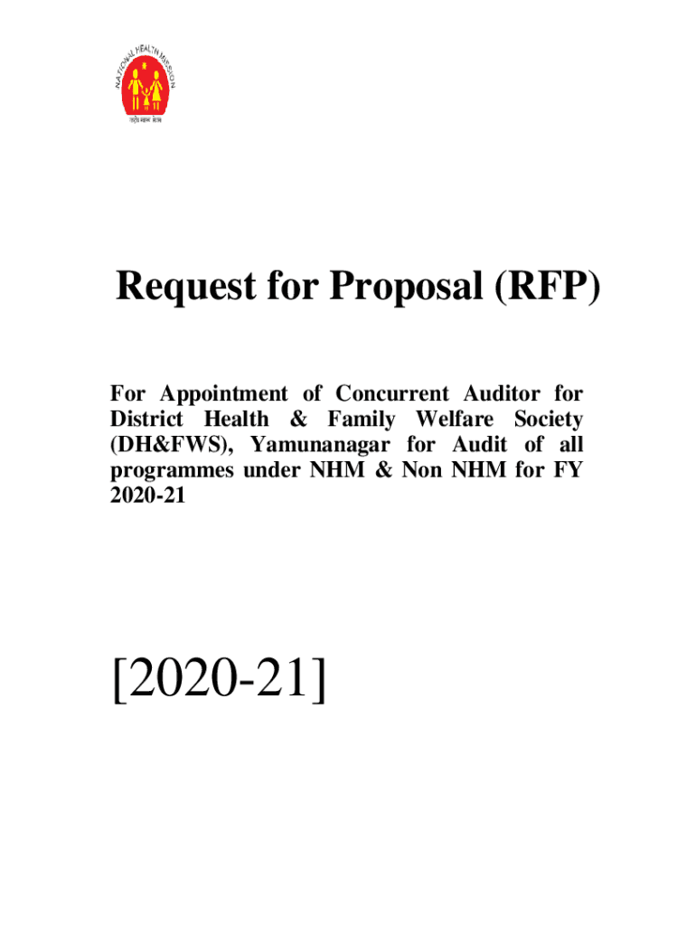 Request for Proposal (RFP) For Appointment of Concurrent Auditor for District Health & Family Welfare Society (DHOWS), Yamunanagar for Audit of all programs under NHS & Non NHS for FY 202021[202021]REQUEST