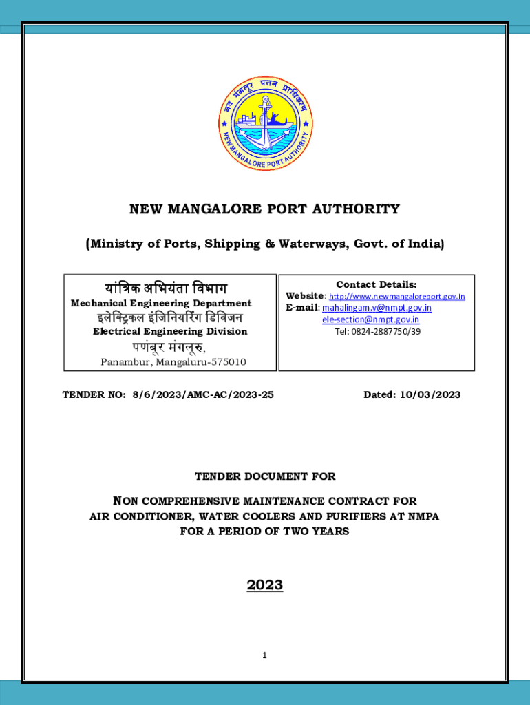 NEW MANGALORE PORT AUTHORITY (Ministry of Ports, Shipping & Waterways, Govt. of India) Contact Details:Website: http://www.newmangaloreport.gov.in Email: mahalingam.v@nmpt.gov.in elesection@nmpt.gov.in