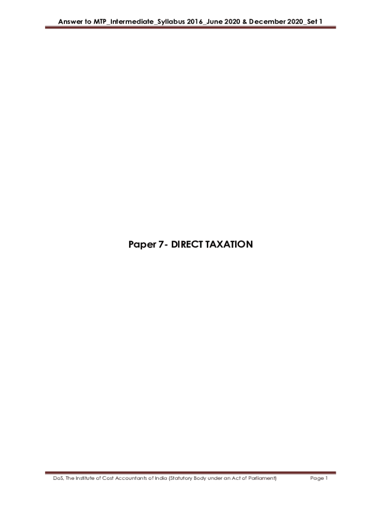 Get the free Paper 7-Direct Taxation: Answer To MTP - Intermediate