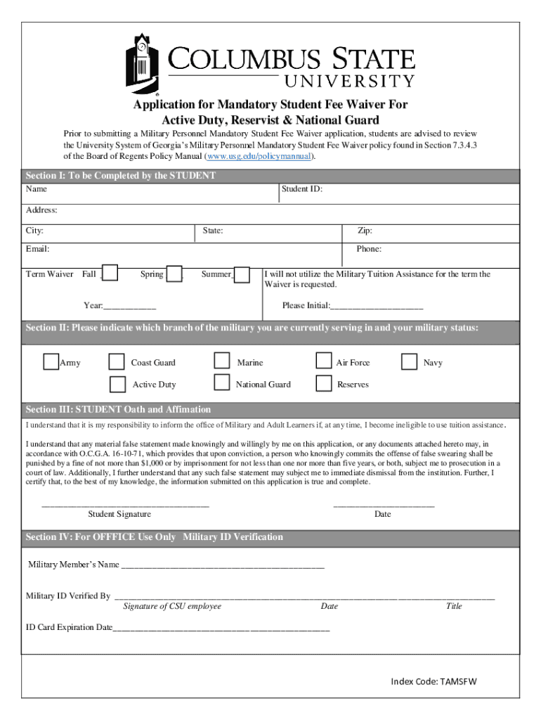 Application for Mandatory Student Fee Waiver For Active Duty, Reservist & National Guard Prior to submitting a Military Personnel Mandatory Student Fee Waiver application, students are advised to