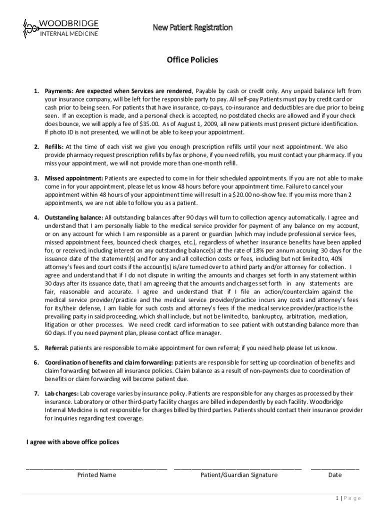 Get the free New Patient Registration Office Policies