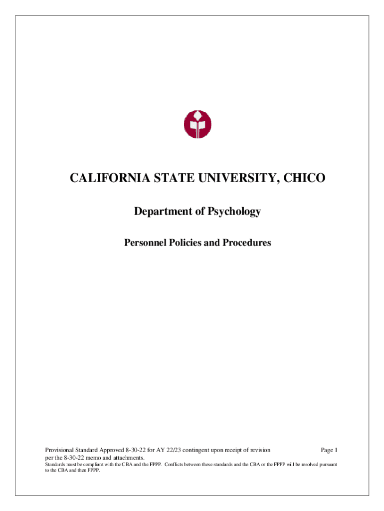CALIFORNIA STATE UNIVERSITY, CHICO Department of Psychology Personnel Policies and ProceduresProvisional Standard Approved 83022 for A 22/23 contingent upon receipt of revision per the 83022 memo