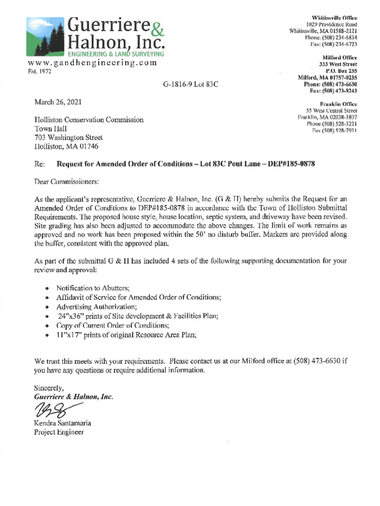 G18169 Lot 83CNotification to Butters Regarding an Amendment to an Order of Conditions Under the Massachusetts Wetlands Protection Act and Hollis tons Wetland Protection Bylaw, Article XXX To Applicant