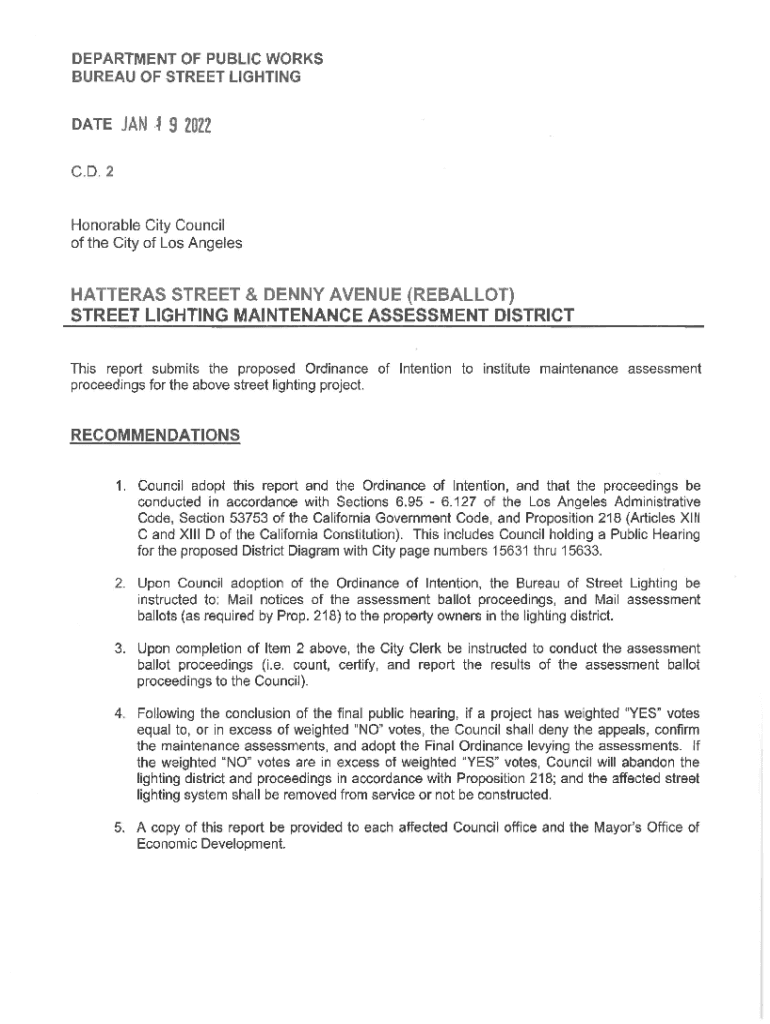 DEPARTMENT OF PUBLIC WORKS BUREAU OF STREET LIGHTING LATERAN.9 2022C. D. 2Honorable City Council of the City of Los AngelesHATTERAS STREET & DENNY AVENUE (BALLOT) STREET LIGHTING MAINTENANCE ASSESSMENT