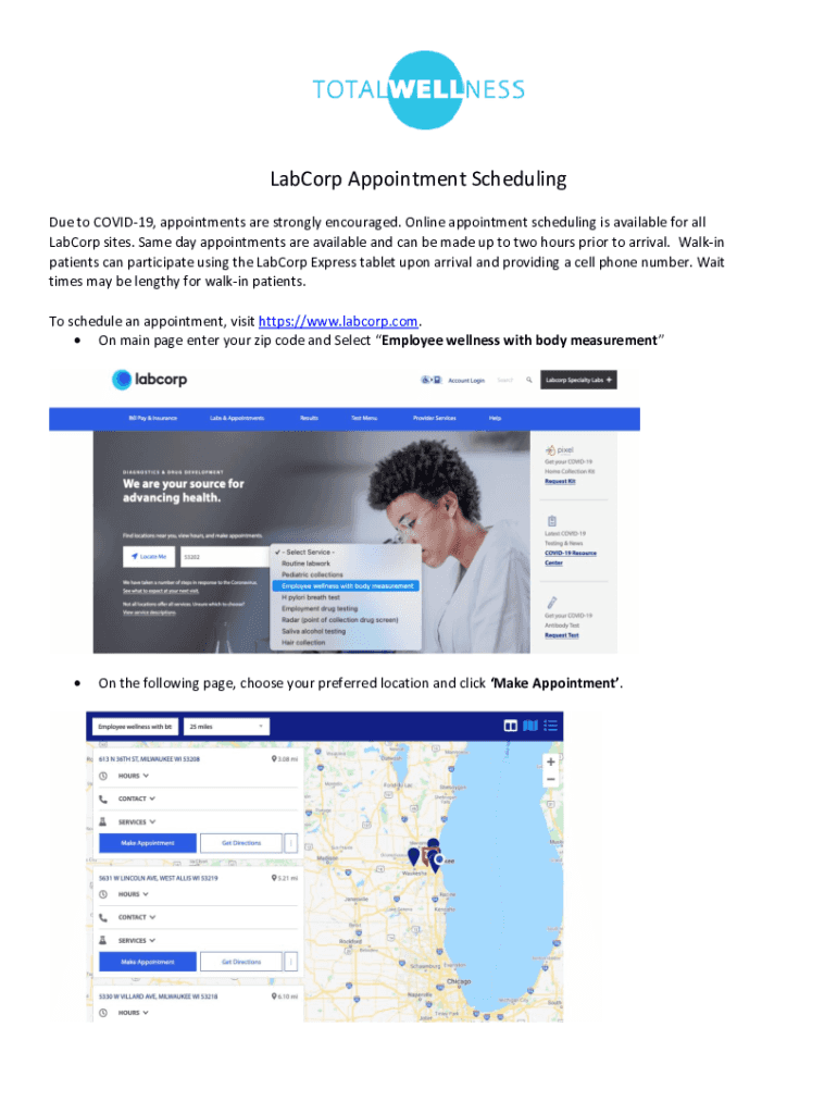 Lab Corp Appointment Scheduling Due to COVID-19, appointments are strongly encouraged. Online appointment scheduling is available for all Lab Corp sites. Same day appointments are available and can