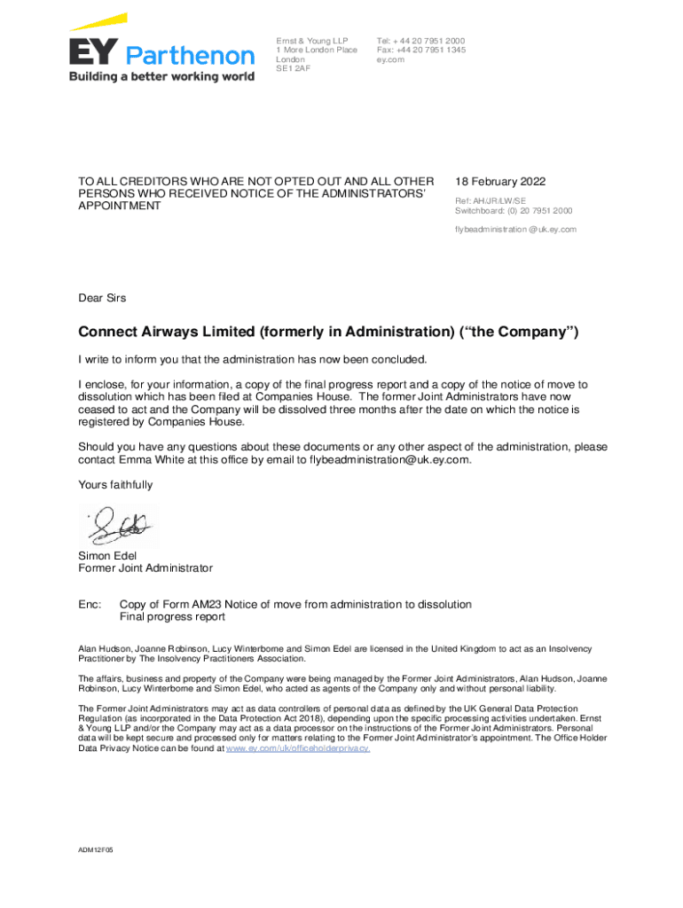 Ernst & Young LLP 1 More London Place London SE1 2AFTel: + 44 20 7951 2000 Fax: +44 20 7951 1345 a.combo ALL CREDITORS WHO ARE NOT OPTED OUT AND ALL OTHER PERSONS WHO RECEIVED NOTICE OF THE ADMINISTRATORS