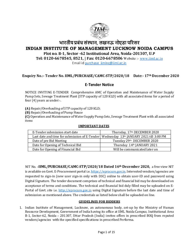 Fill out your stp-tender-iimlnc2020 online with pdfFiller!