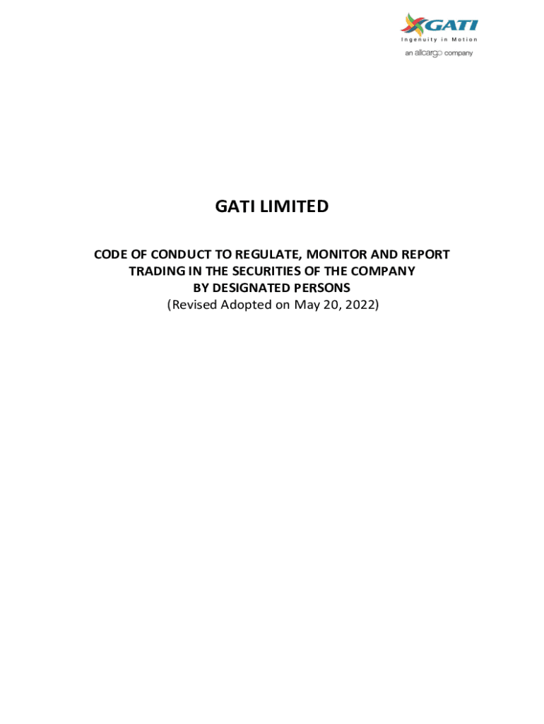 GATE LIMITED CODE OF CONDUCT TO REGULATE, MONITOR AND REPORT TRADING IN THE SECURITIES OF THE COMPANY BY DESIGNATED PERSONS (Revised Adopted on May 20, 2022)1) INTRODUCTION: a. This Code of Conduct