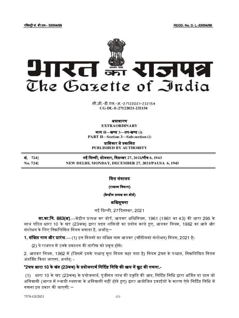 . . 33004/99REGD. No. D. L.33004/99.....27122021232154 xxxGIDHxxx CGDLE27122021232154 xxxGIDExxx EXTRAORDINARY II 3 (i) PART Bisection 3Subsection (i) PUBLISHED BY AUTHORITY. 724] No. 724], 27, 2021/