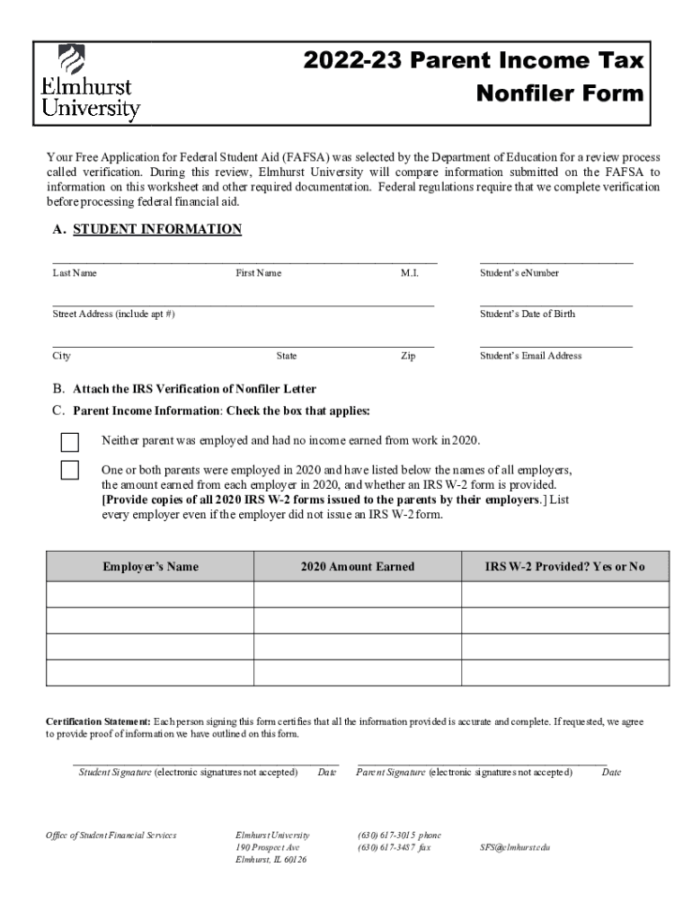 Get the free 2022-23 Parent Income Tax Nonfiler Form Elmhurst University