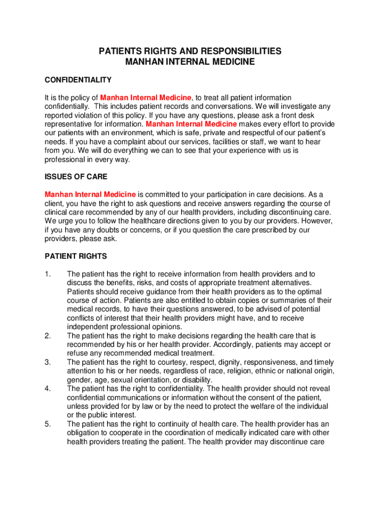 How to fill out patient rights and responsibilities