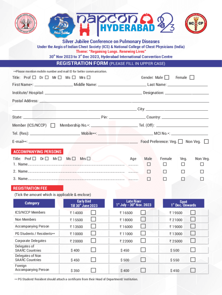 Silver Jubilee Conference on Pulmonary Diseases Under the Aegis of Indian Chest Society (ICS) & National College of Chest Physicians (India) Theme: Regaining Lungs. Renewing Lives TH 30 Nov 2023 to