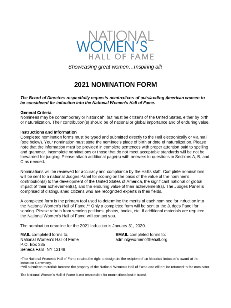 Instructions for the form Nominations being accepted for Women's Hall of Fame