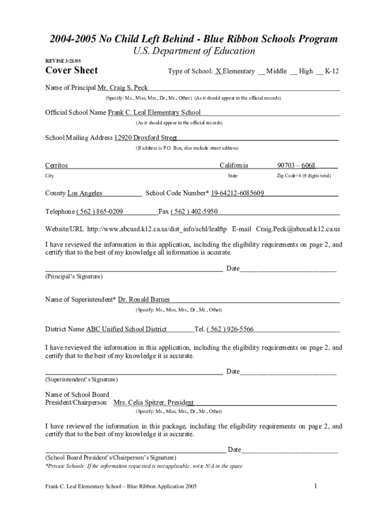 Get the free No Child Left Behind Blue Ribbon Schools Program U. S. ...