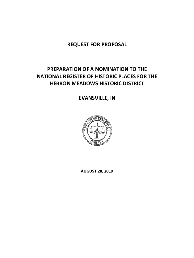 REQUEST FOR PROPOSALPREPARATION OF A NOMINATION TO THE NATIONAL REGISTER OF HISTORIC PLACES FOR THE HERON MEADOWS HISTORIC DISTRICT EVANSVILLE, AUGUST 28, 2019NOTICE TO BIDDERS The City of Evansville,