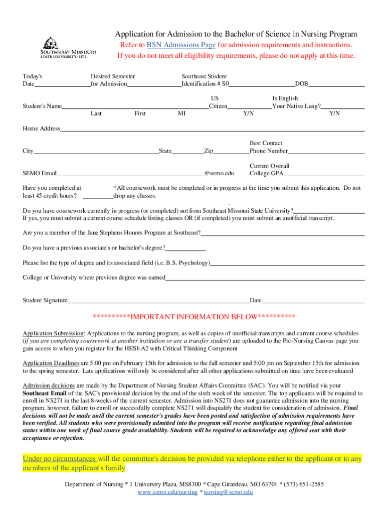 Fill out your bsn admission application and online with pdfFiller!