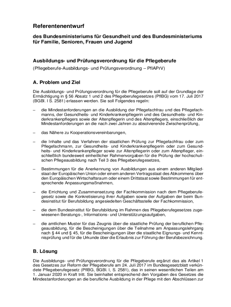 for Families, Senioren, Frauen UND JugendAusbildungs UND Prfungsverordnung for die Pflegeberufe