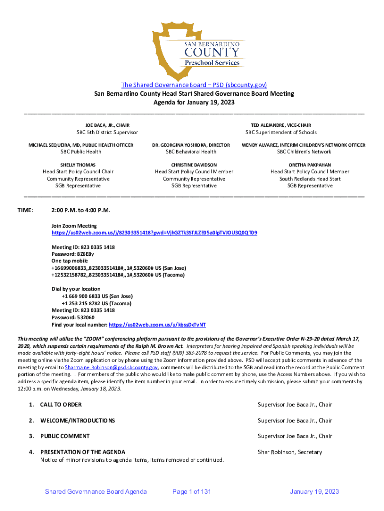San Bernardino County Head Start Shared Governance Board Meeting