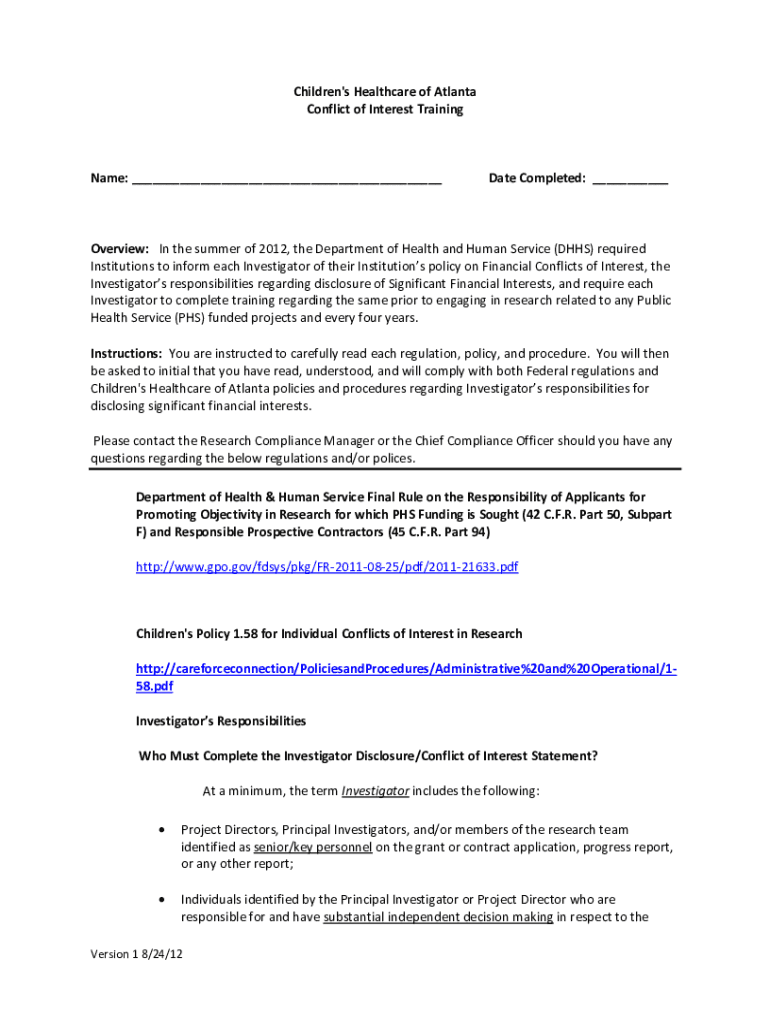 Get the free Children's Healthcare of Atlanta Conflict of Interest Training ...