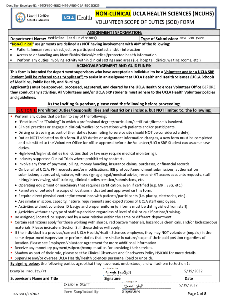 DocuSign Envelope ID: 486CF56C4EE24466A8B0C5A182C2DB26NONCLINICAL UCLA HEALTH SCIENCES (CUTS) VOLUNTEER SCOPE OF DUTIES (SOD) FORM Department Name:ASSIGNMENT INFORMATION: Type of Submission:Medicine
