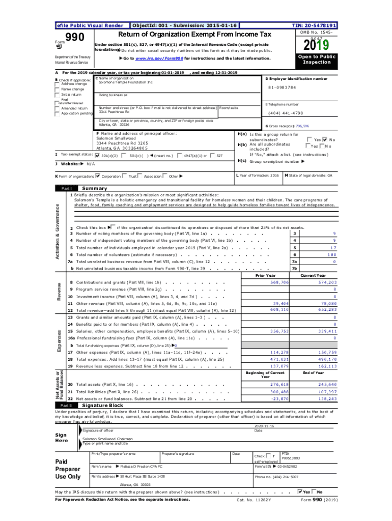 EfilePublicVisualRenderObjectId:001Submission:20150116TIN:205478191990Form00472019Undersection501(c),527,or4947(a)(1)oftheInternalRevenueCode(except private foundations) Donotentersocialsecuritynumbersonthisformasitmaybemadepublic.