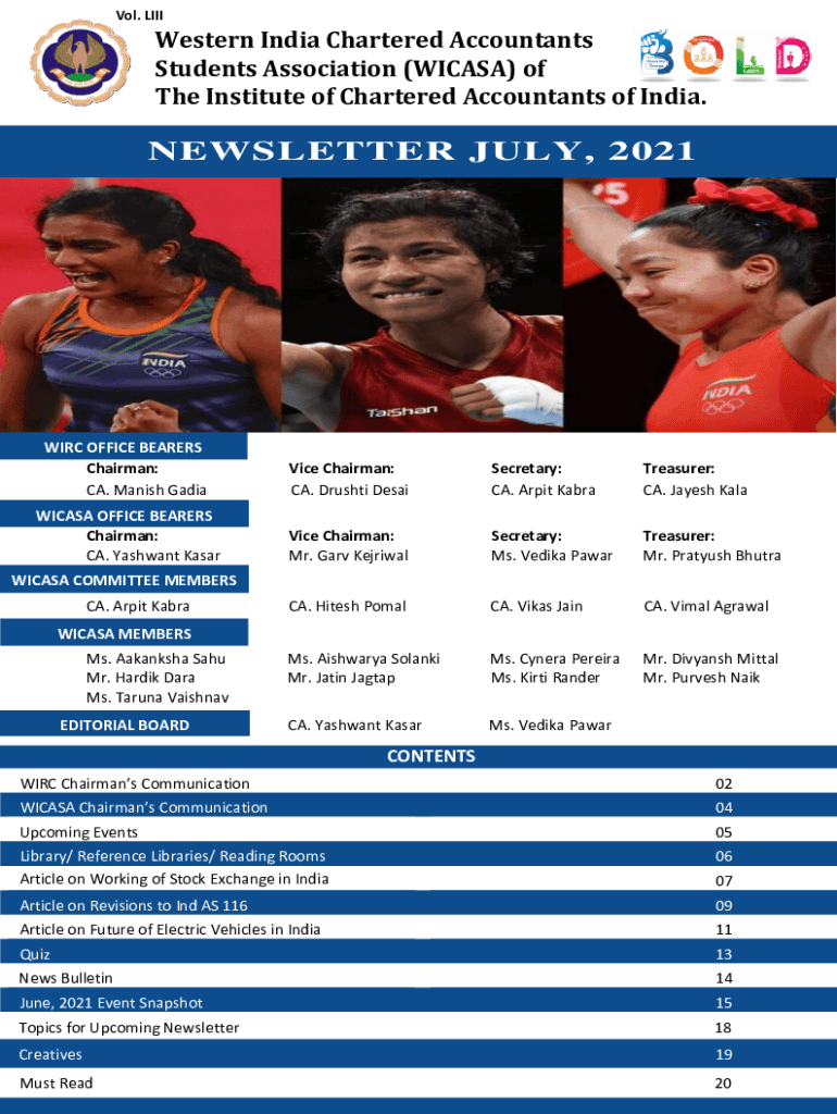 The Institute of Chartered Accountants of India. NEWSLETTER JULY, 2021WIRC OFFICE BEARERS