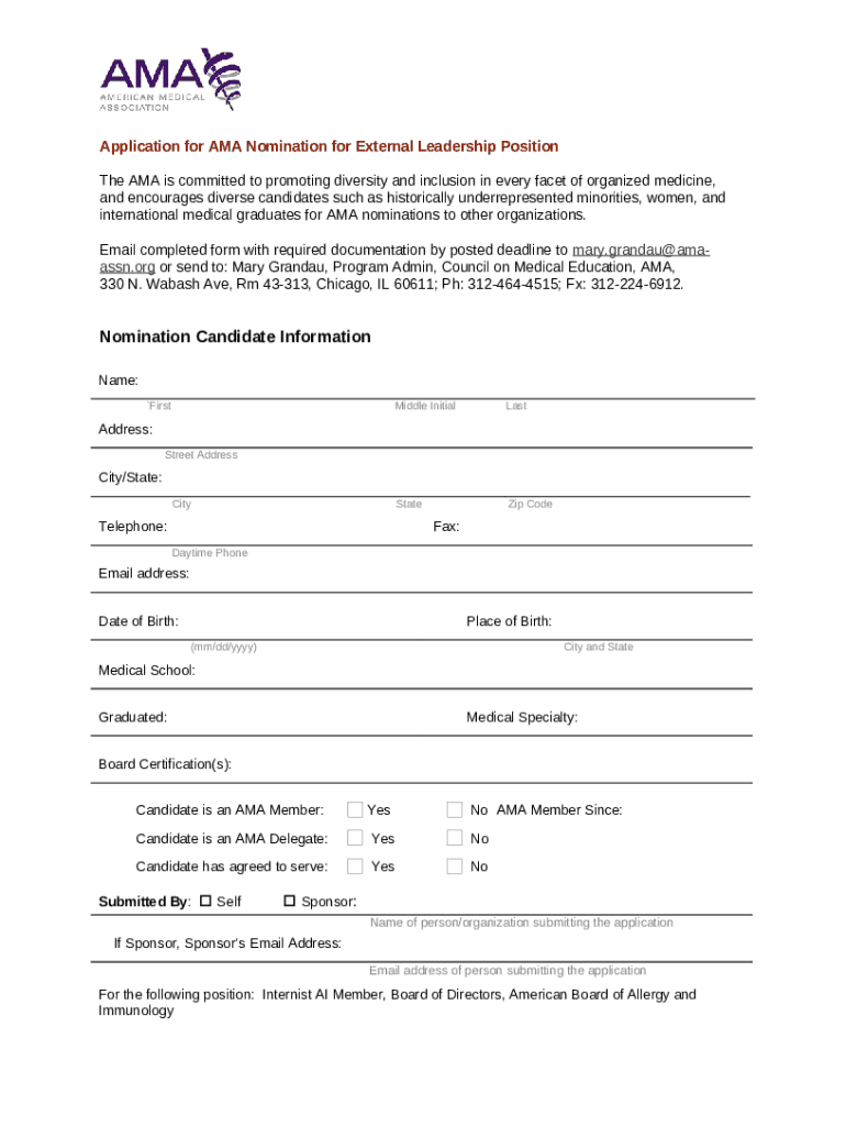 How to fill out application-for-ama-nomination-for-external-leadership-position- ...