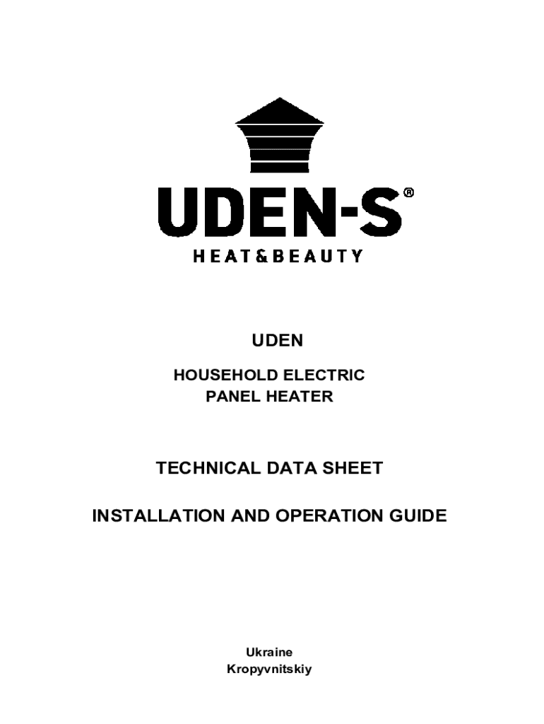 DEN HOUSEHOLD ELECTRIC PANEL HEATERTECHNICAL DATA SHEET INSTALLATION AND OPERATION GUIDE Ukraine Kropyvnitskiy1. Application DEN household electric panel heater (hereinafter referred to as DEN) is