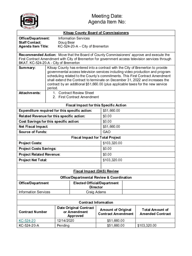Meeting Date: Agenda Item No: Kitsap County Board of Commissioners Office/Department: Staff Contact: Agenda Item Title:Information Services Doug Bear KC52420A City of BremertonRecommended Action: