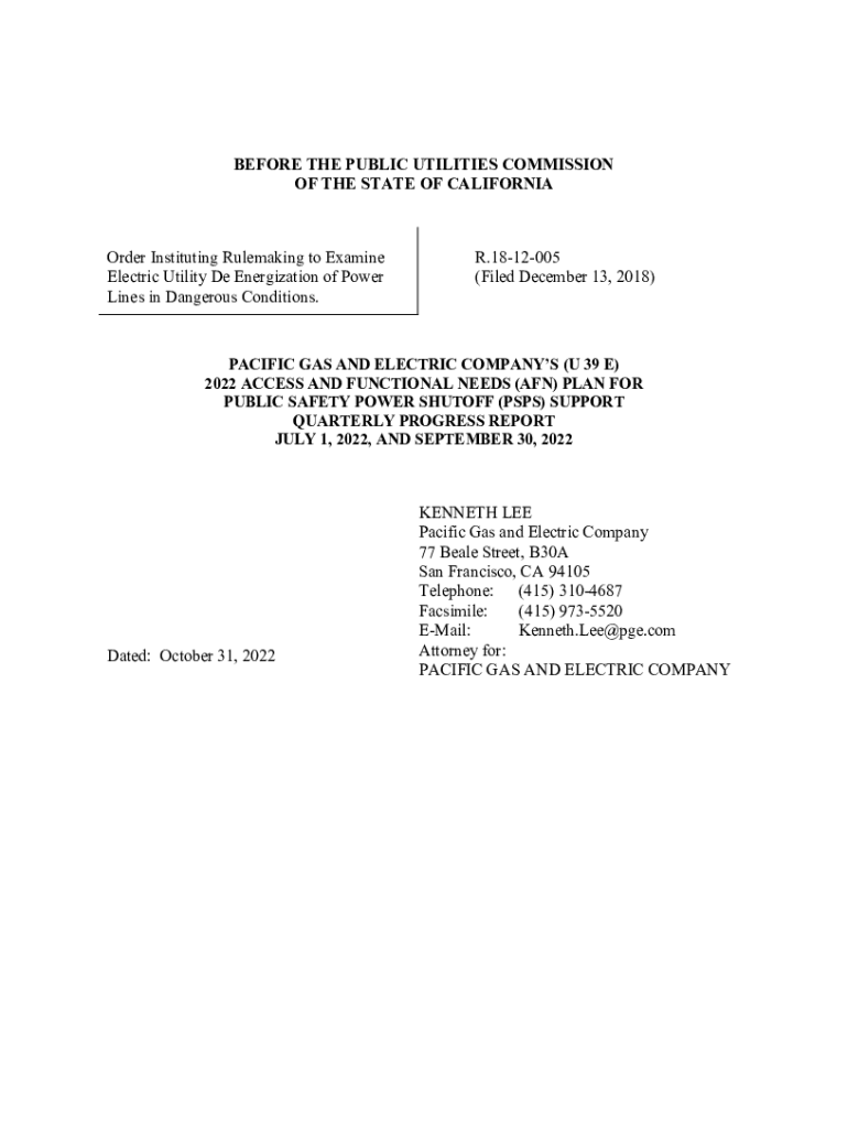 BEFORE THE PUBLIC UTILITIES COMMISSION OF THE STATE OF CALIFORNIAOrder Instituting Rule making to Examine Electric Utility DE Energization of Power Lines in Dangerous Conditions. R.1812005 (Filed