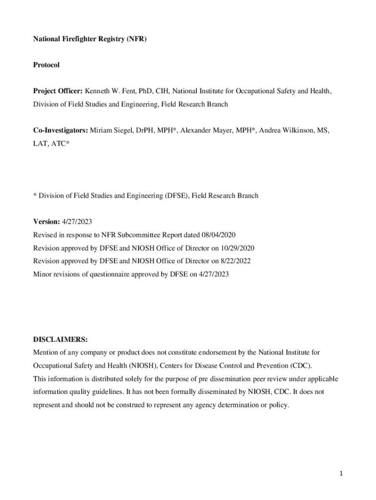 Get the free National Firefighter Registry Protocol. National Firefighter Registry Protocol