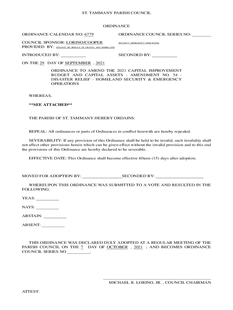 ST. TAMMANY PARISH COUNCILORDINANCE