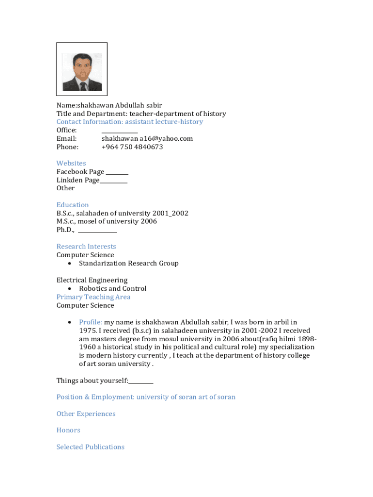 Get the free Name:shakhawan Abdullah sabir Title and Department: teacher ...