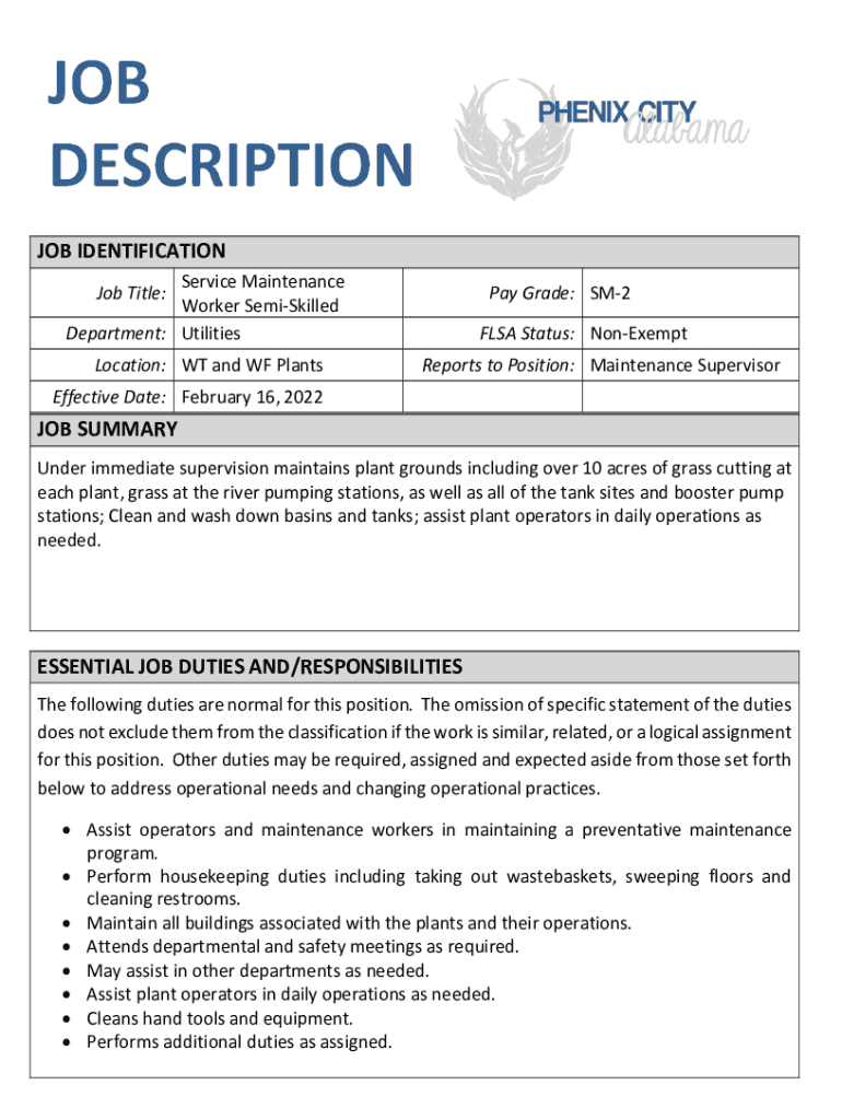 Get the free Job Description Service Mainenance Worker Semi-Skilled ...