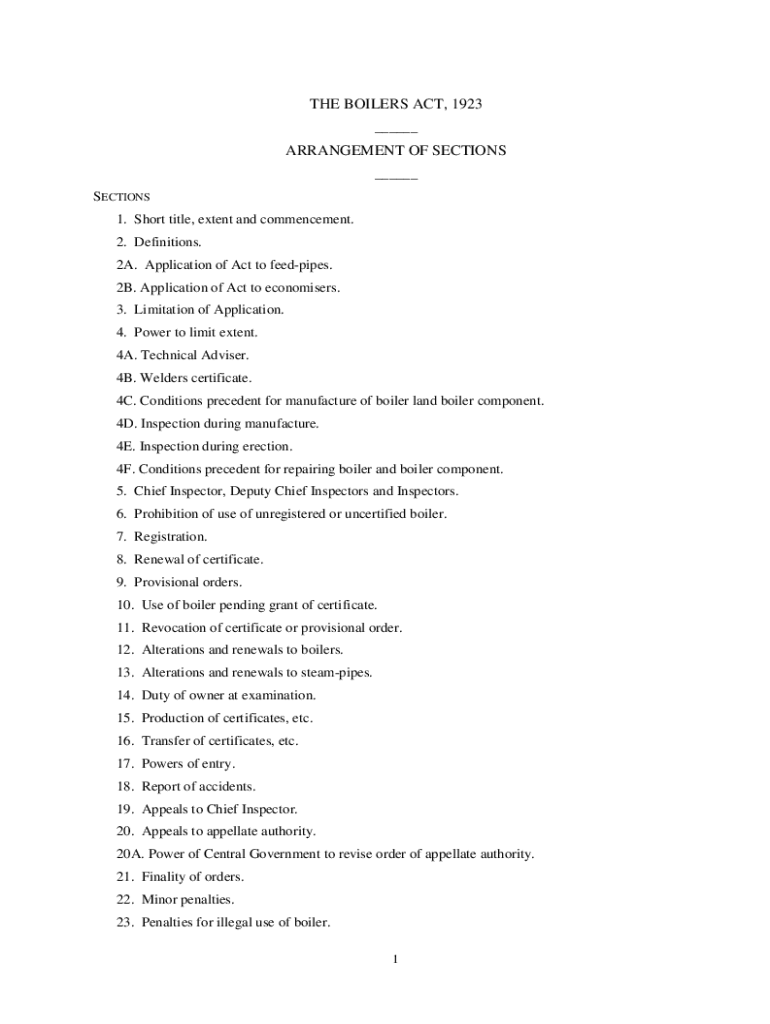 Get the free THE BOILERS ACT, 1923 ARRANGEMENT OF SECTIONS
