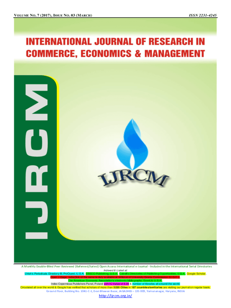 Get the free Annals of Joint is indexed in Emerging Sources Citation Index ... - ijrcm org