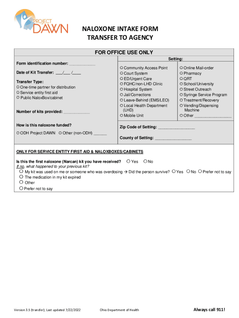 Healthcare providers and pharmacies are required to file naloxone intake form version.