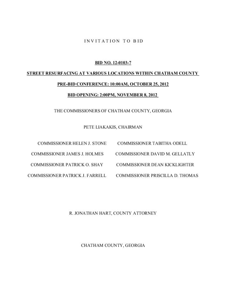 BID OPENING: 2:00PM, NOVEMBER 8, 2012THE COMMISSIONERS OF