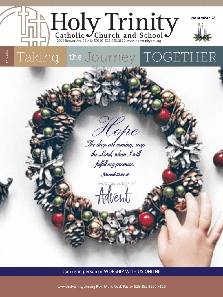 November 282926 Beaver Ave DSM IA 50310 515.255.3162 www.holytrinitydm.org2 0 2 1TakingtheJourney TOGETHERHopeThe days are coming, says the Lord, when I will fulfill my promise. Jeremiah 33:1416 First