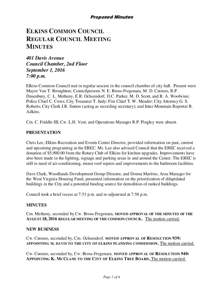 Proposed MinutesELKINS COMMON COUNCIL